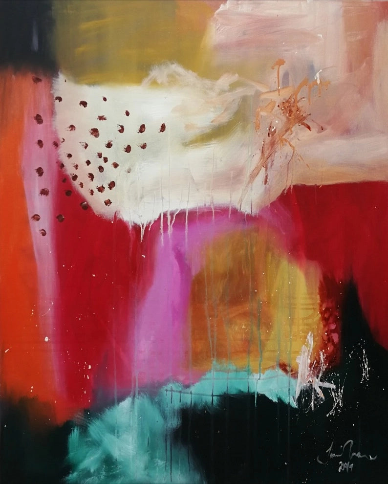 Essentia-kokoelma koostuu alkuperäisistä abstrakteista maalauksista, jotka syntyvät intuitiivisen luomisen kautta. Luomisprosessissani tärkeintä on vapaus, leikki ja heittäytyminen.